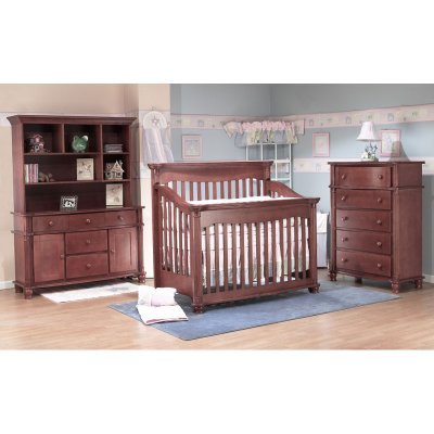 Shop for Cribs from Cribs.com! Able to accommodate your child from infancy to adulthood the Regal 4-in-1 Convertible Crib Collection is an economical and practical choice. Constructed of solid birch and veneers it's available in an autumn or cherry finish. Both finishes are non-toxic and safe for the baby. Fluted columns on each corner add an elegant touch to this crib as do the decorative bun feet. As a crib all sides are stationary for added stability. The mattress is adjustable to three positions so you can continue to drop it as baby gets older. When baby is more active and able to crawl out it's time to switch to the toddler bed. The next stage is the daybed which is as simple as removing the mini side rails and raising the mattress. Finally use the front and back panels of the original crib as a headboard and footboard to create a full-size bed. Full-size bed rails are not included.You may choose to purchase the Regal 4-in-1 Convertible Crib alone or pick and choose which coordinating pieces you'd like to accompany it. These selections will help you easily create a fully-furnished nursery. One optional piece is the changer that features five drawers and two storage cupboards. All you need to add is a changing pad to the top and you've got a functional place for diaper changes that's packed full of storage. If you're more interested in storage than a changer add the optional hutch to the changer to create a sophisticated combo unit. This three-shelved hutch on top of the base creates a single unit that might just hold all the stuff that comes with a baby. The third optional piece is the chest featuring five wide drawers for adequate storage of all things baby. Coordinating pieces are available in a variety of configurations so you can easily find the set-up that works best for you. All pieces features dovetail drawers for added strength and beautiful fluted corner columns to match the crib.About Sorelle Furniture:Sorelle Furniture is a complete line with